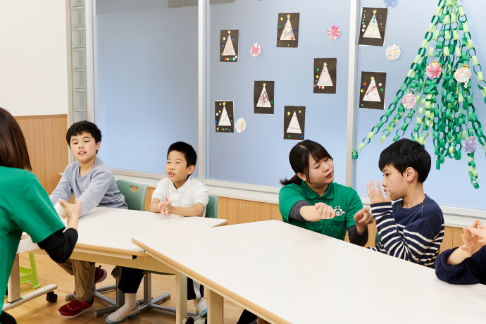 現在は、放課後等デイサービス事業である「療育支援ルームボンデイ」で働いています。ダウン症や自閉症等の障がいのある子どもたちが元気に通っており、身辺自立に向けた支援や個々の課題に合わせた活動、ルール遊びや運動といった集団療育を組み合わせて行っています。ハロウィンやクリスマスといったイベントなどを組み込み、楽しみながら季節が感じられるような工夫をしています。